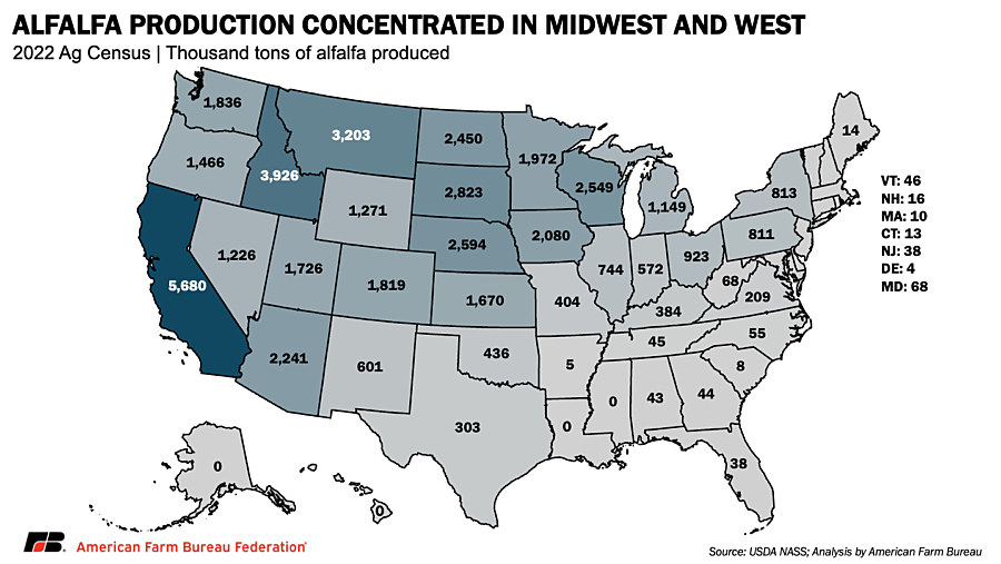 - A major U.S. field crop without a safety net: Alfalfa is the fourth most valuable field crop in the U.S., generating roughly $8.1 billion in farm-gate value in 2024, yet it remains largely outside core farm safety-net programs.