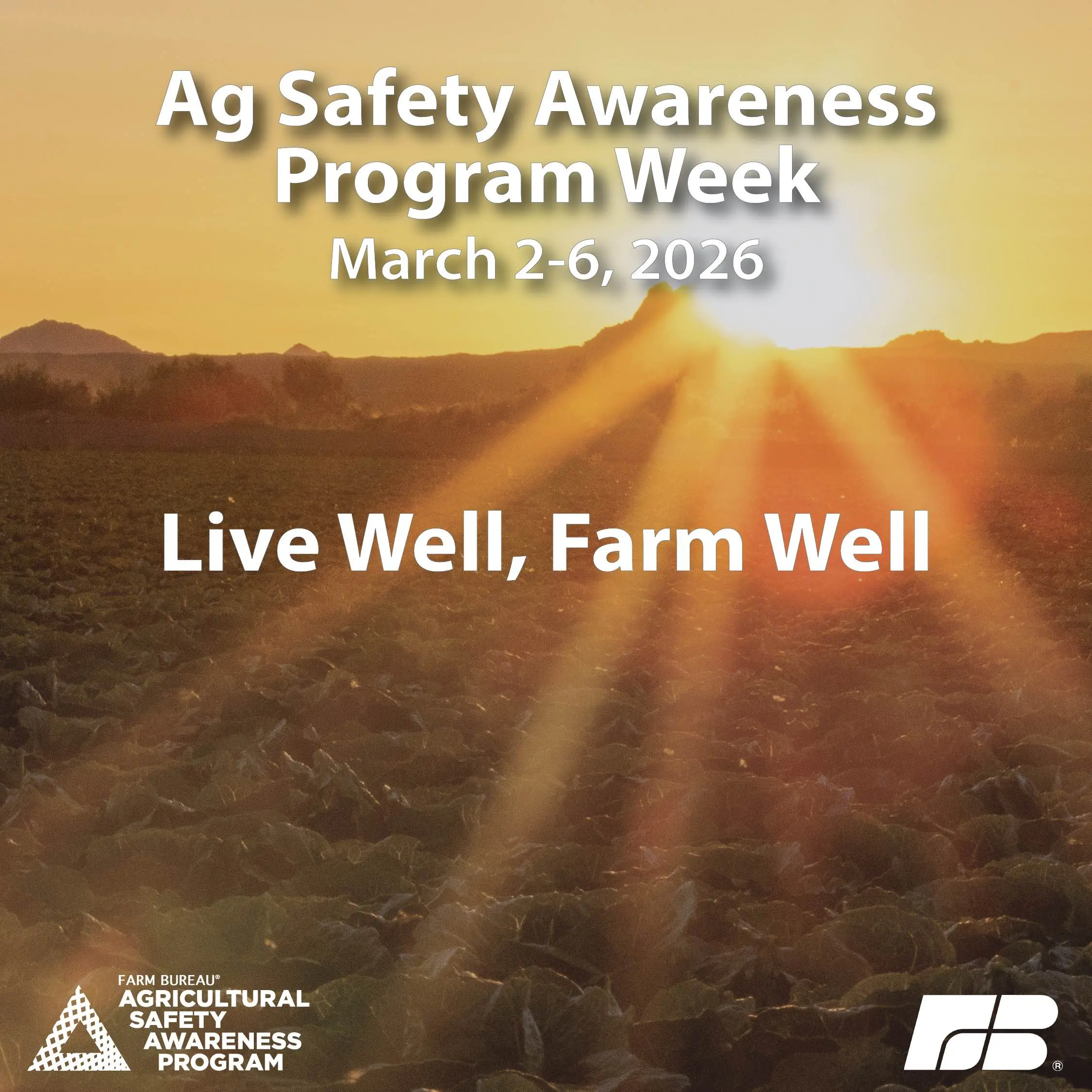 SANDY, Utah. February 25, 2026 – County and state Farm Bureau leaders across the nation are sharing resources that will help farmers and ranchers keep safety top of mind through the Agricultural Safety Awareness Program (ASAP) Week. As part of this year’s ASAP commemoration, March 2-6 has been designated as Agricultural Safety Awareness Week. U.S. Agricultural Safety and Health Centers and AgriSafe Network will join Farm Bureau in promoting the week with its theme, “Live Well. Farm Well”.